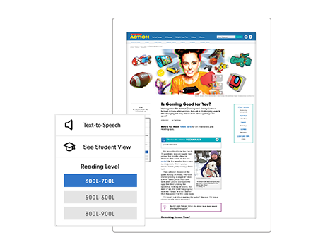 Plus! Reach every learner with multiple reading levels, videos, audio and slideshows. Strengthen reading, writing and thinking skills with motivating ELA activities, questions and more.