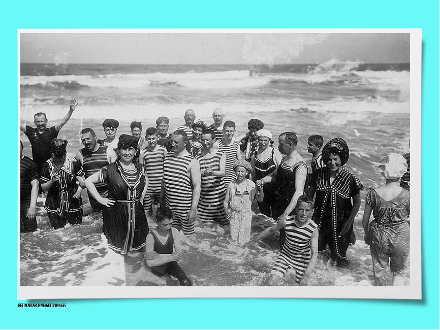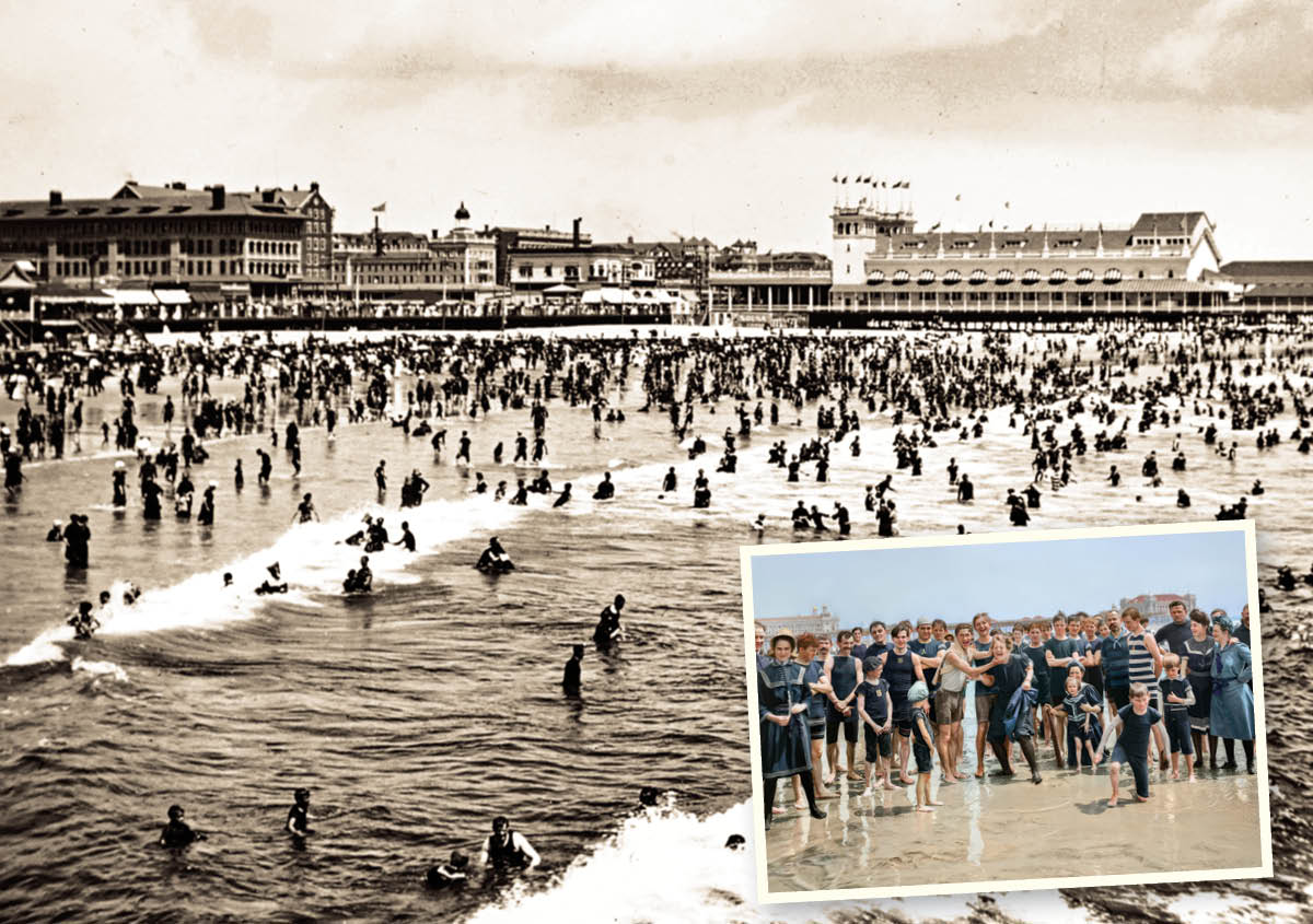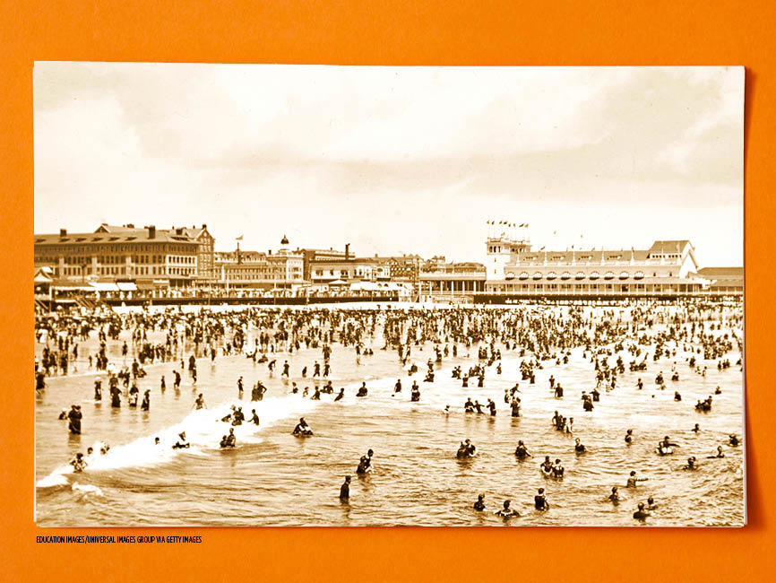 Crowds enjoy the water in Atlantic City, New Jersey. The first shark attack of 1916 happened just north of this popular beach.