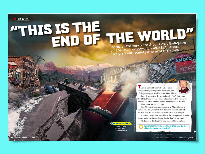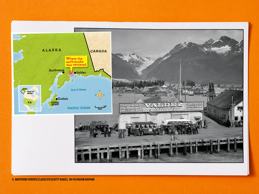 At 5:36 p.m., the ground in southern Alaska began to shake. This time, it didn’t stop. The land cracked. Cliffsides crashed into the sea. Giant waves smashed into villages.