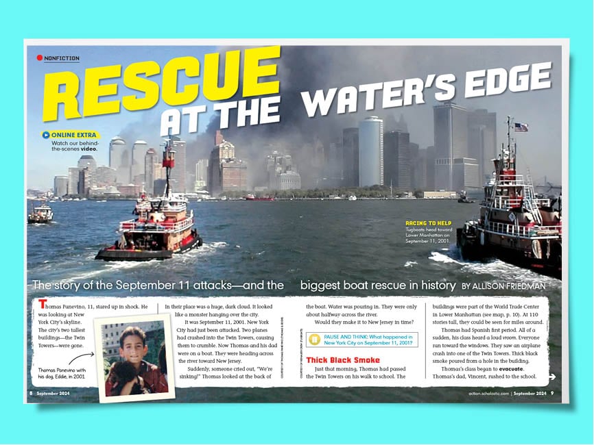 It was September 11, 2001, and New York City had just been attacked. Two planes had crashed into the Twin Towers, causing them to crumble. Now Thomas and his father were on a boat headed across the river toward New Jersey.