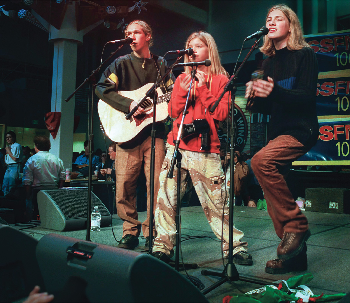 Pop group Hanson performs at a mall in 1997. Malls sometimes hosted concerts to bring in teen shoppers.