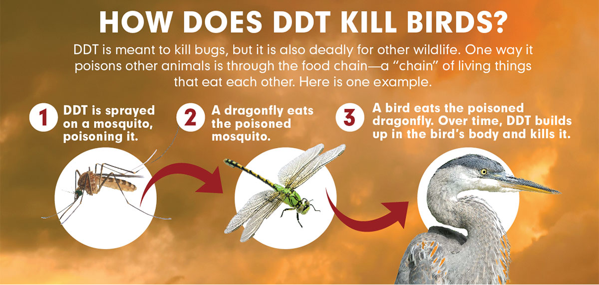Carson: Birds eat the earthworms. Now the birds are poisoned.